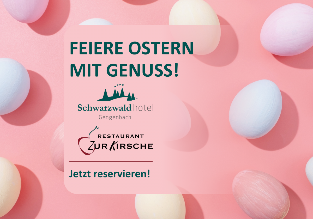 Verbringen Sie die Osterfeiertage entspannt bei uns im Schwarzwaldhotel. Statt Hektik erwartet Sie Ruhe, Zeit für Ihre Liebsten und ein besonderes Oster-Menü, das wir speziell für diese Tage kreiert haben.